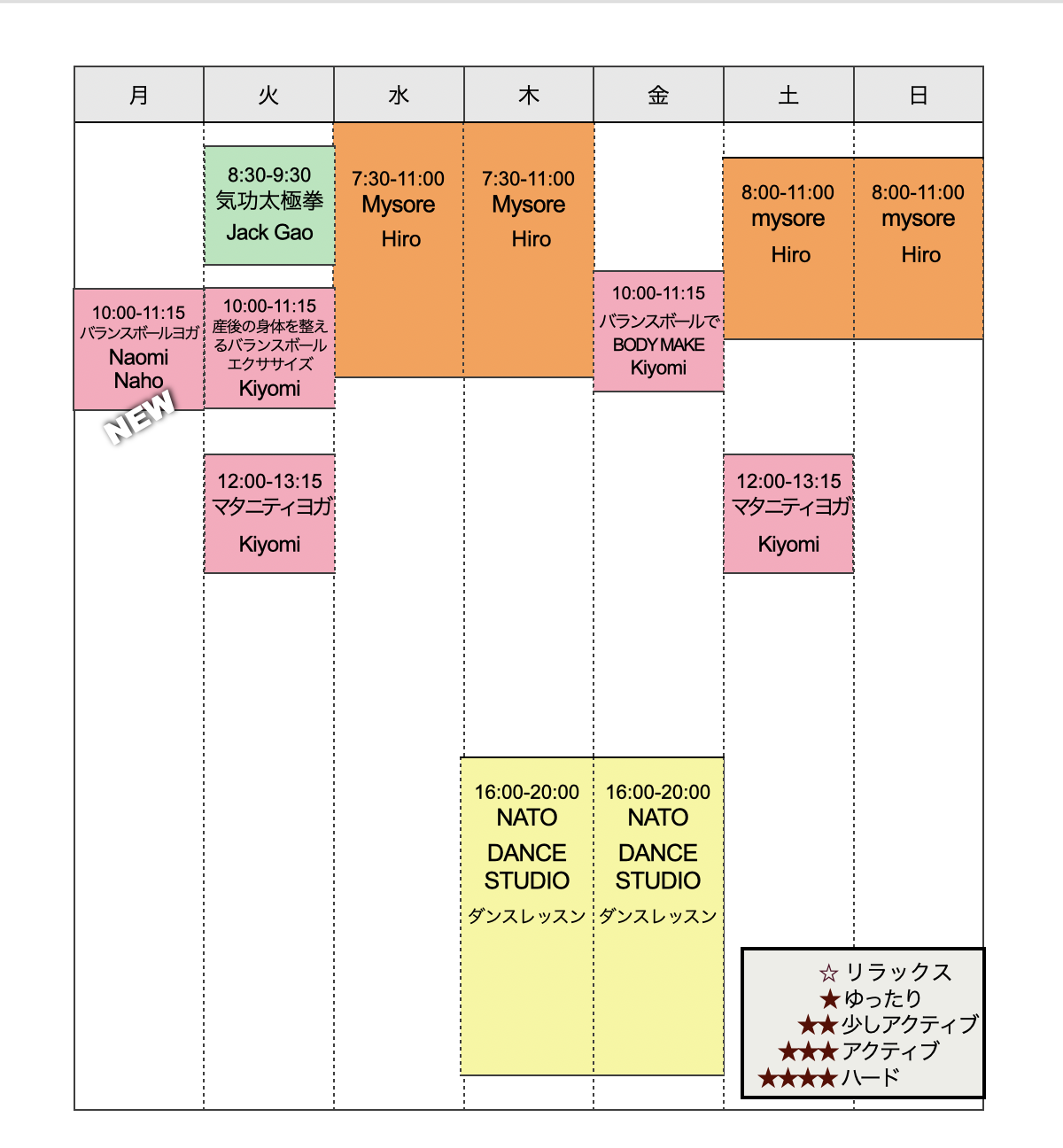 ※マイソールクラスは前日までに参加予約をお願いします